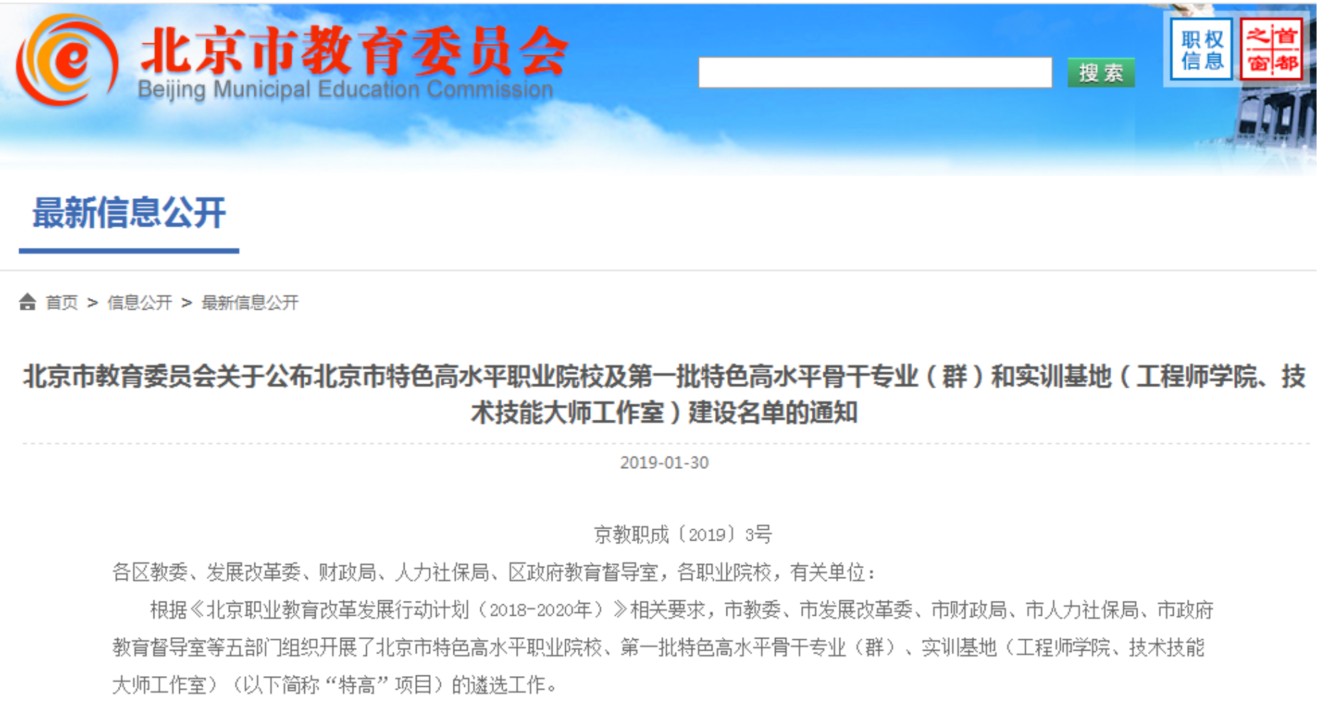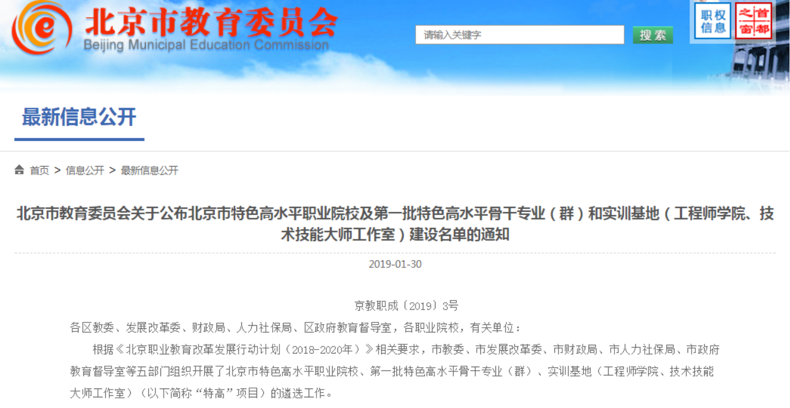 图21第一批北京市特色高水平骨干专业(群)建设批复文件