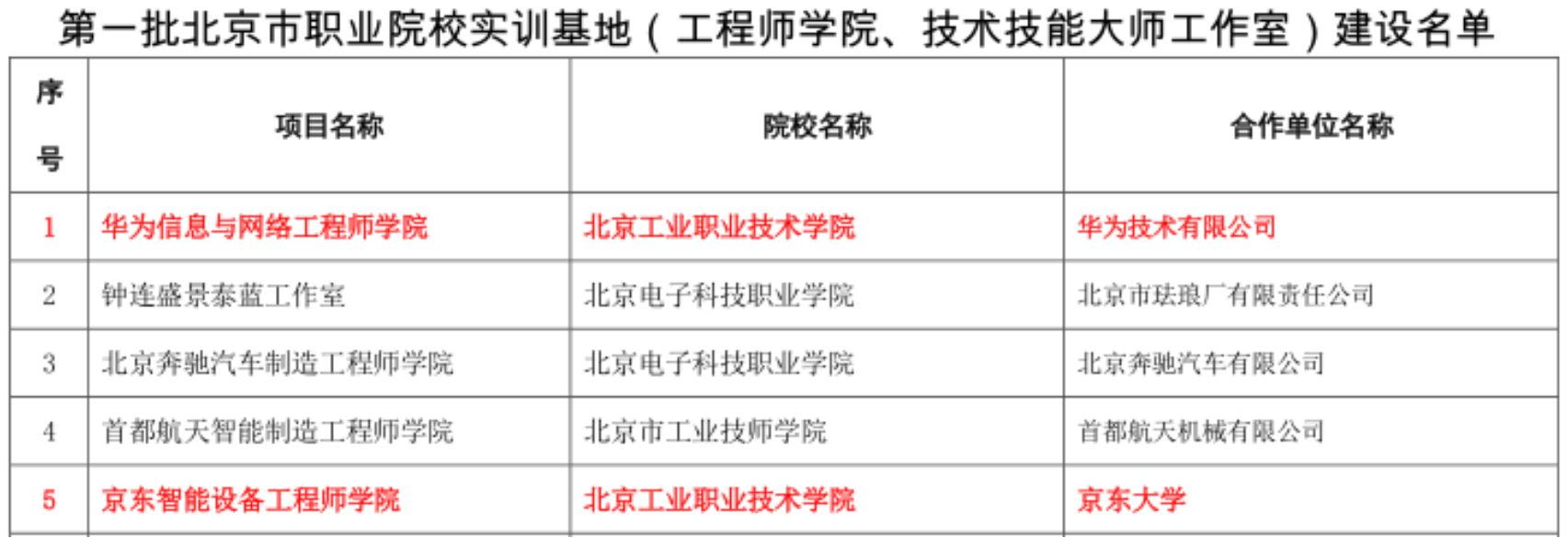 为了贯彻落实国务院关于产教融合的若干意见,北京市教委根据《北京职业教育改革发展行动计划(2018-2020)》建设工程师学院和技术技能大师工作室。经北京市教委遴选,与企业共建京东智能设备工程师学院、华为信息与网络工程师学院等。